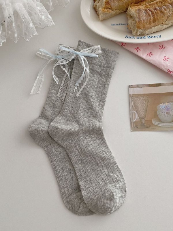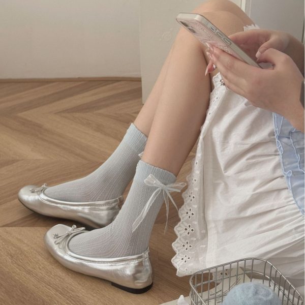 Summer Thin Boneless Ballet Style Ins Japanese Girl Lace Bow Ribbon Socks Women’s Mid Tube Stockings